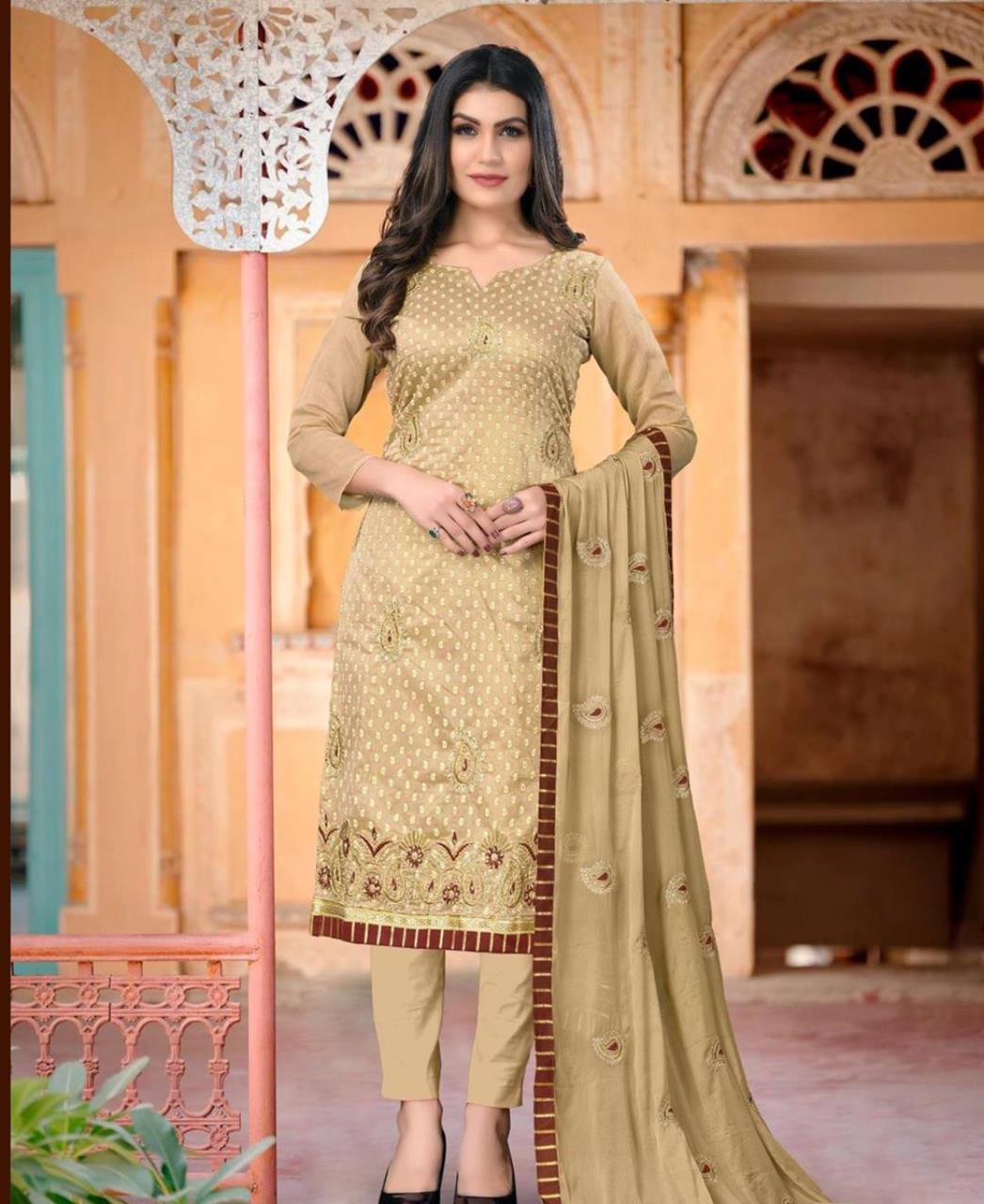 Normally size is measured between the underarm stitching lines from the stressed kameez.