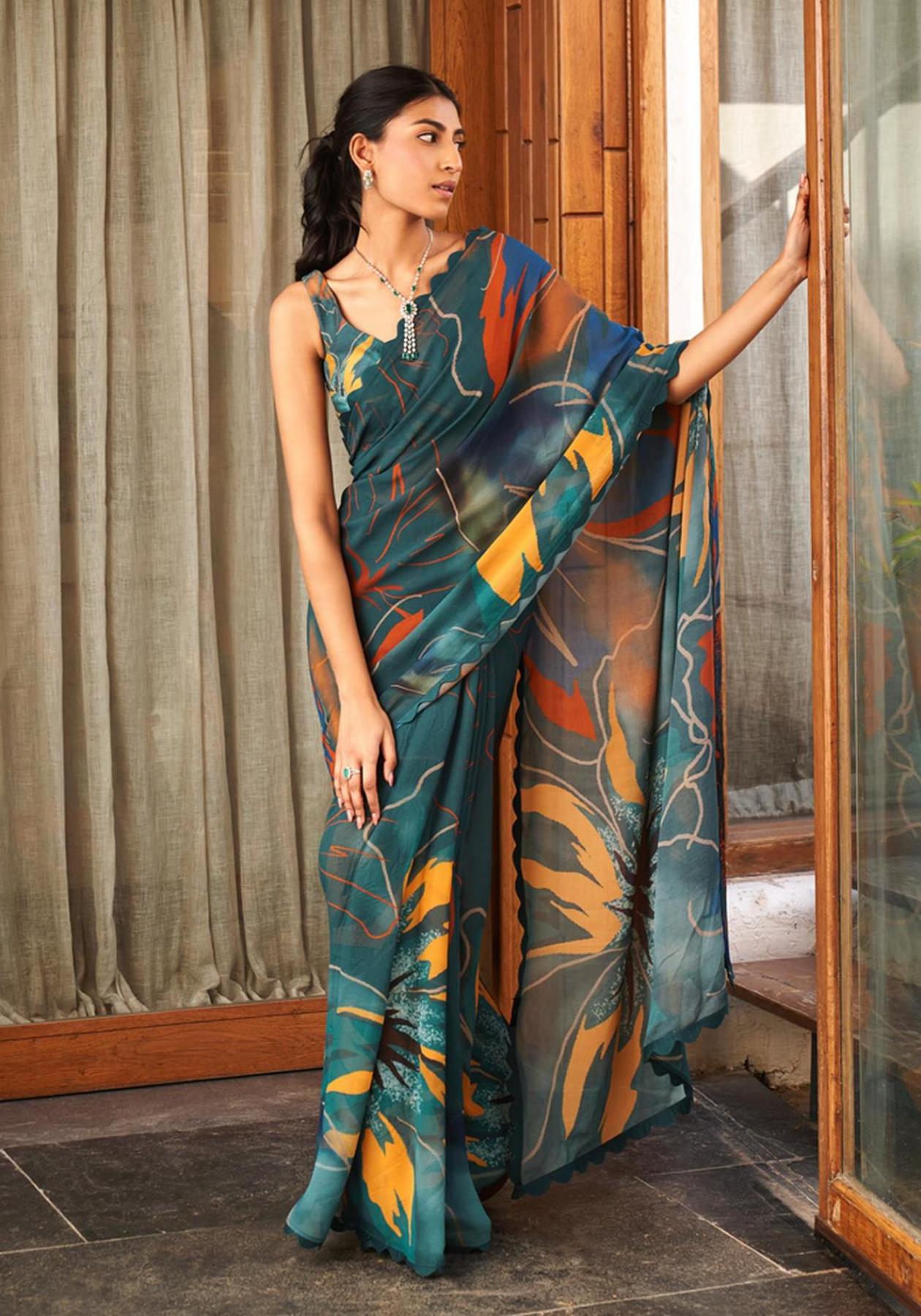 In Pre-stitched saree you will get the saree with stitched plates, belt on the waist and adjustable hooks. So you can wear the saree like a skirt