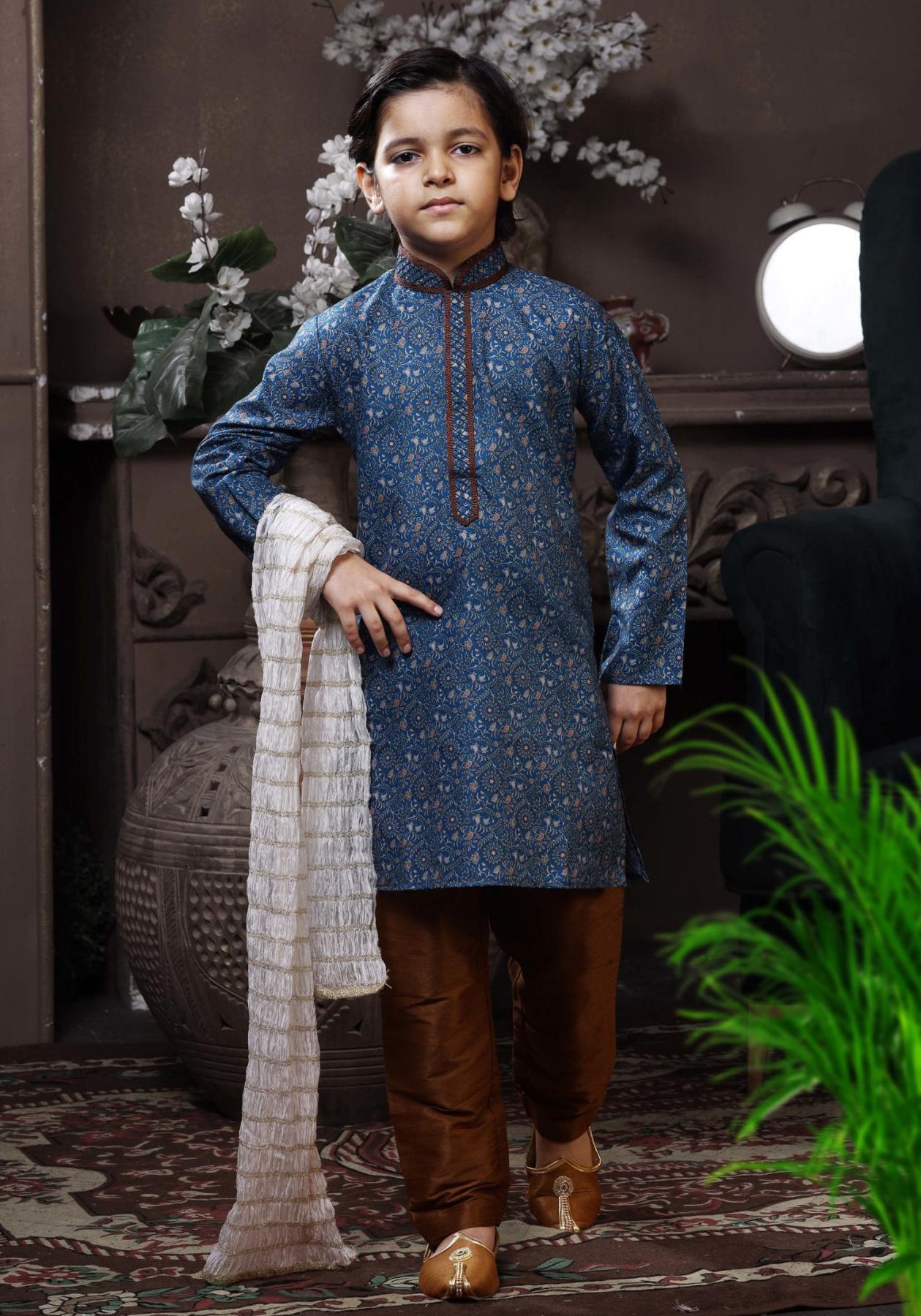 Buy Nice Cotton Dark Slate Grey Kids Kurta Pyjama online.