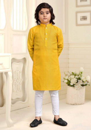Picture of Nice Cotton Golden Rod Kids Kurta Pyjama Picture of Nice Cotton Golden Rod Kids Kurta Pyjama