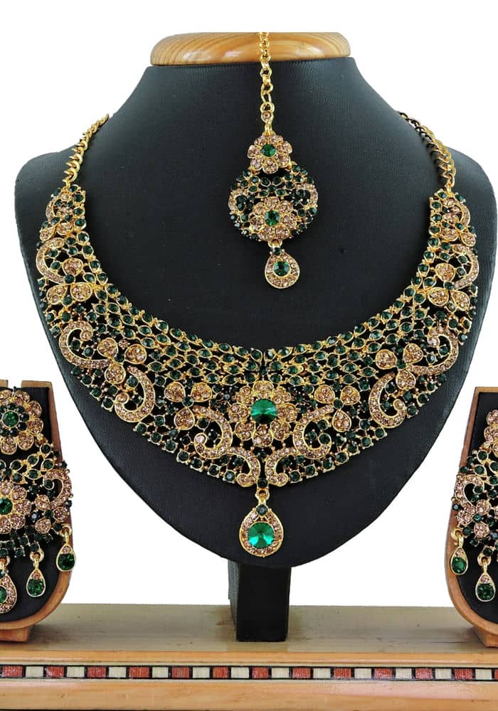 Buy Nice Dark Sea Green Necklace Set online.