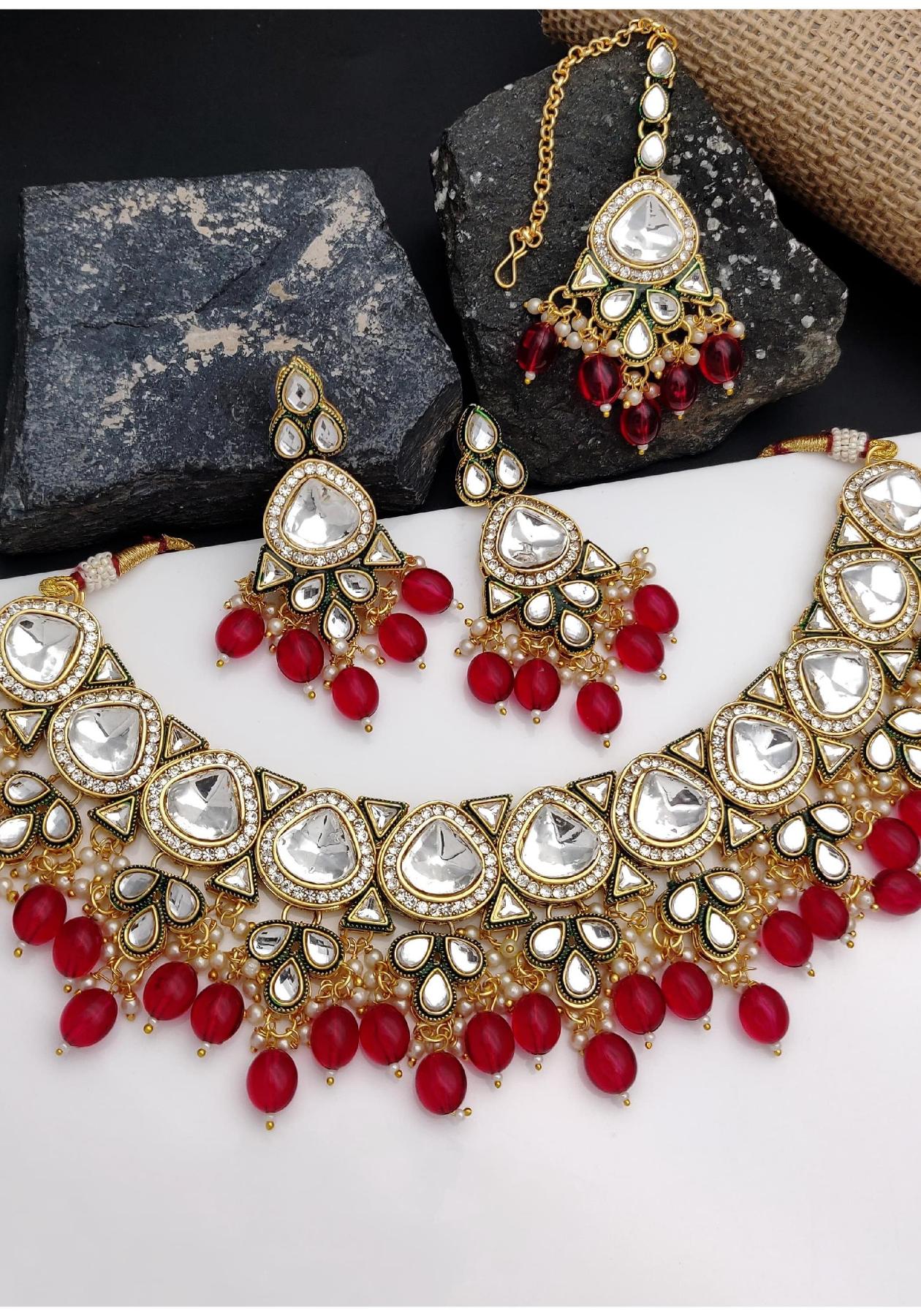 Details: 1 Chokar, 1 Pai Earrings, 1 Maangtika.