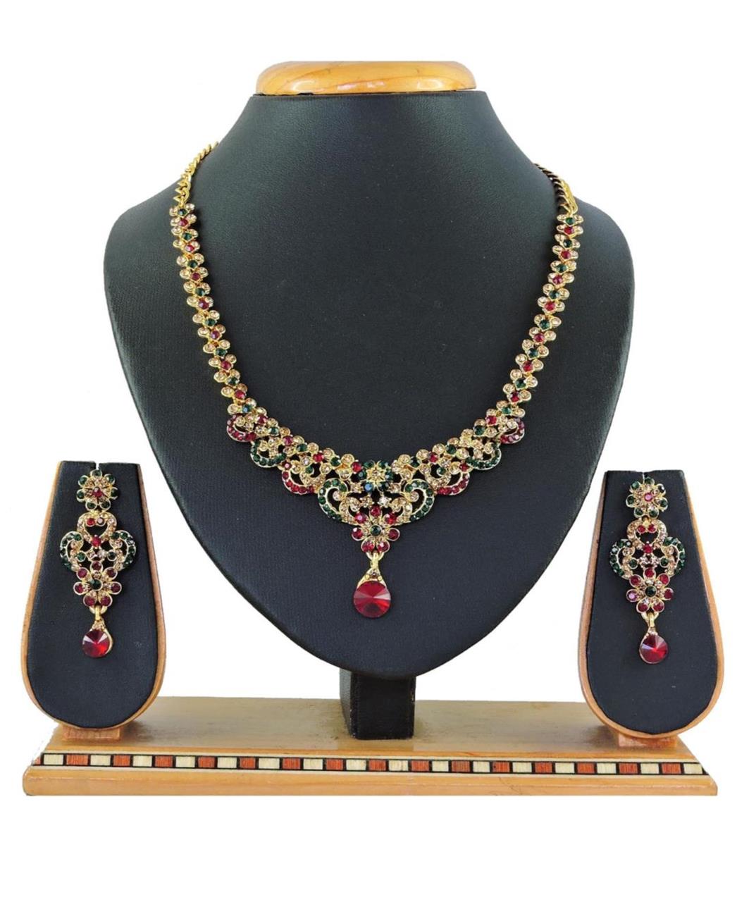 Buy Nice Maroon+Green Earrings Jewellery Neckless For Women