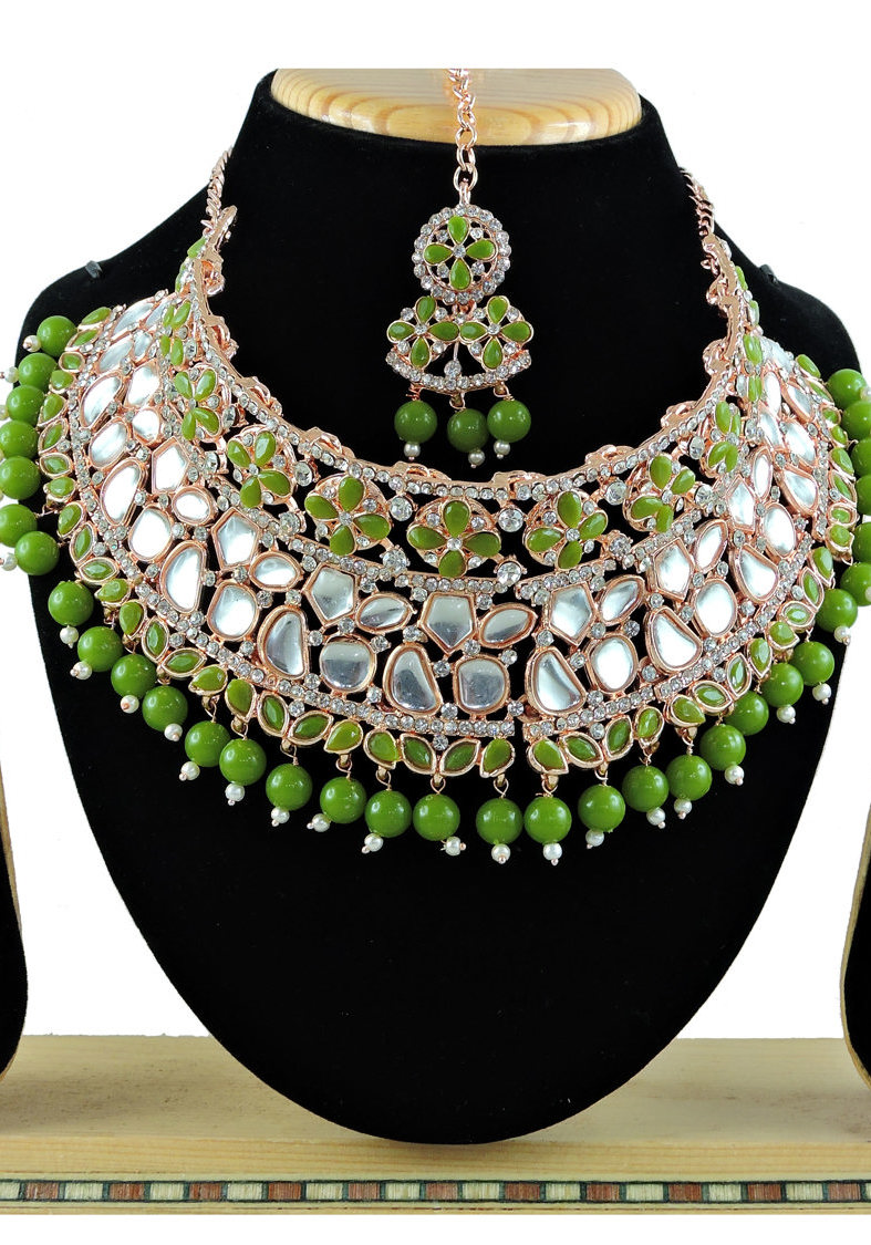 Details: 1 Necklace Set, 2 Earrings, 1 Mang Tikka.