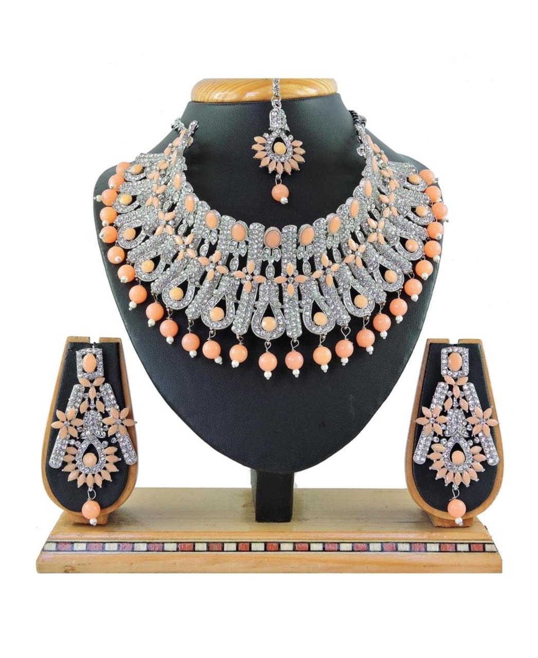 Buy Nice Peach Necklace Set Jewellery Neckless For Women