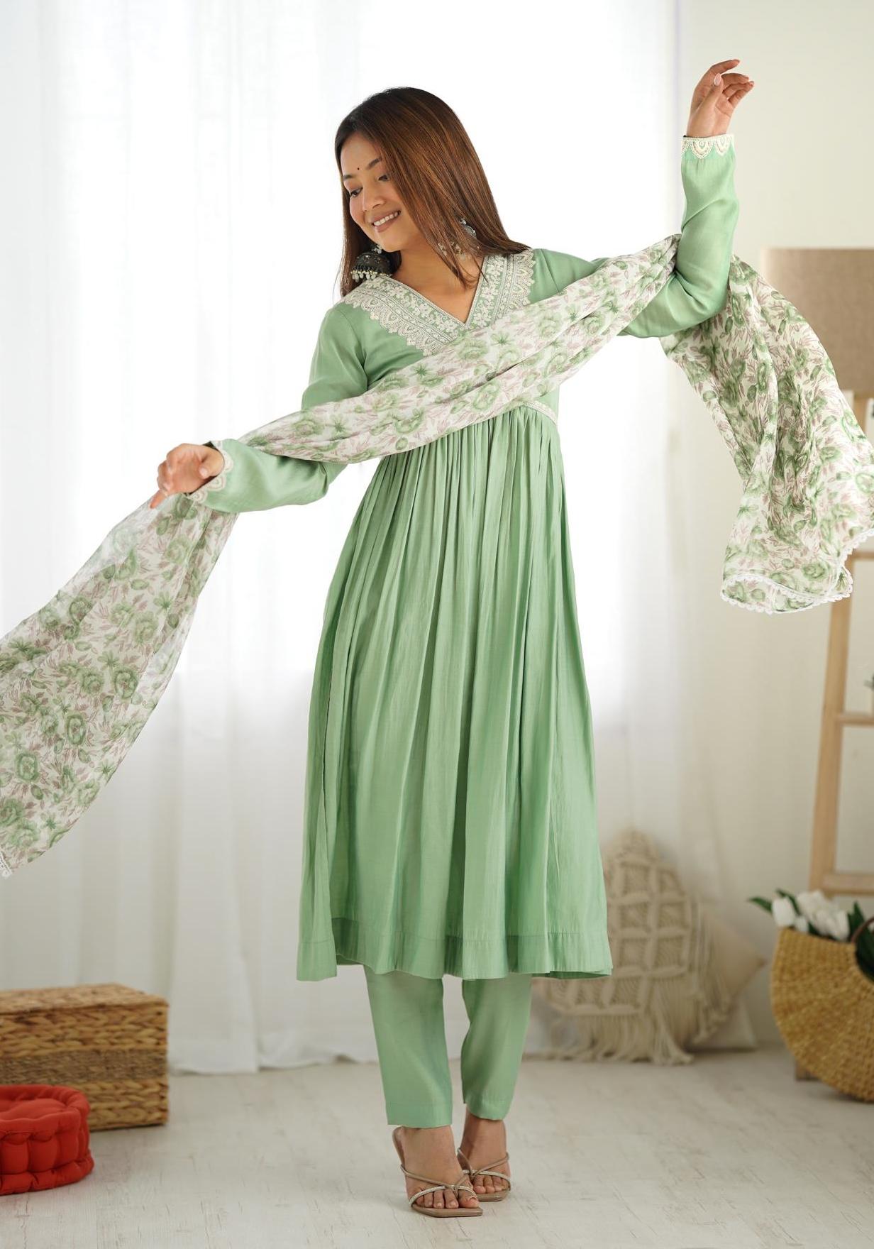 Buy Nice Silk Dark Sea Green Readymade Salwar Kameez online.