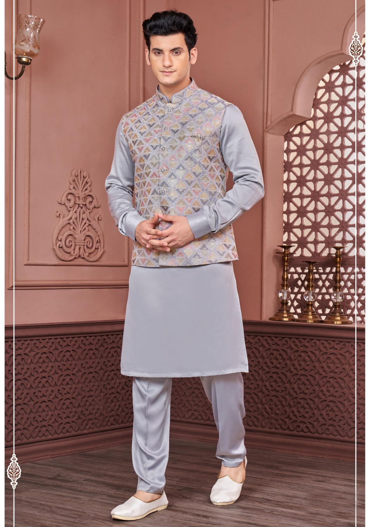 Picture of Nice Silk Light Slate Grey Kurtas Picture of Nice Silk Light Slate Grey Kurtas