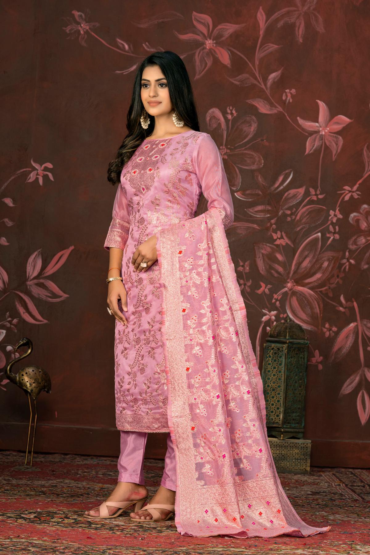 Normally size is measured between the underarm stitching lines from the stressed kameez.
