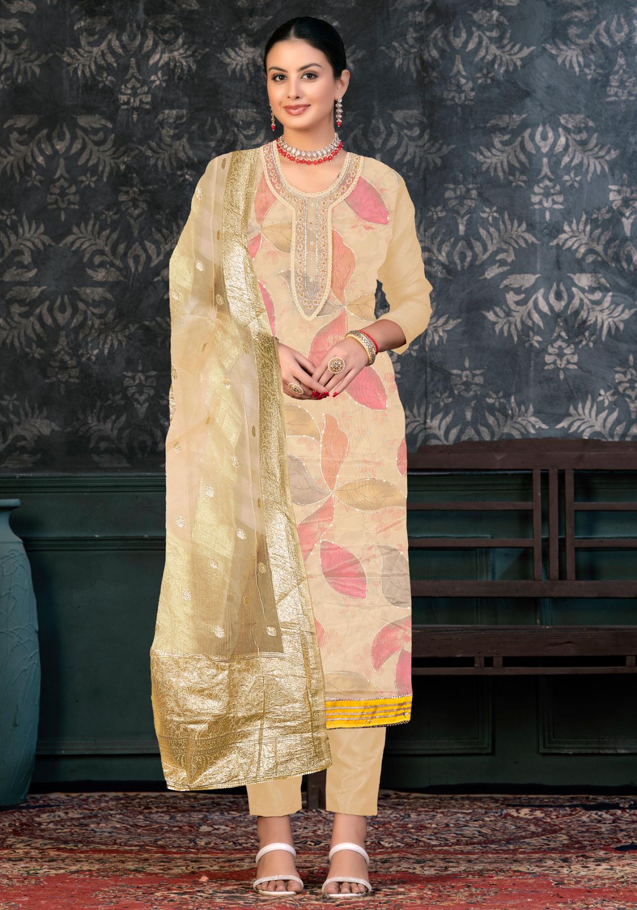Normally size is measured between the underarm stitching lines from the stressed kameez.