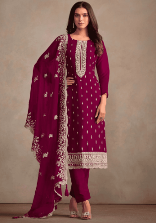 Buy Organza Saddle Brown Straight Cut Salwar Kameez online.