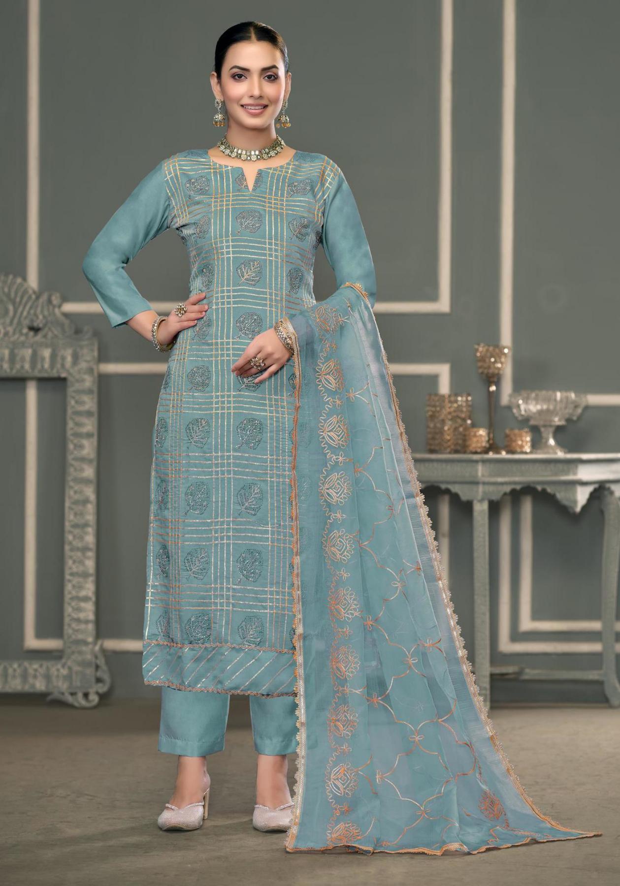 Normally size is measured between the underarm stitching lines from the stressed kameez.