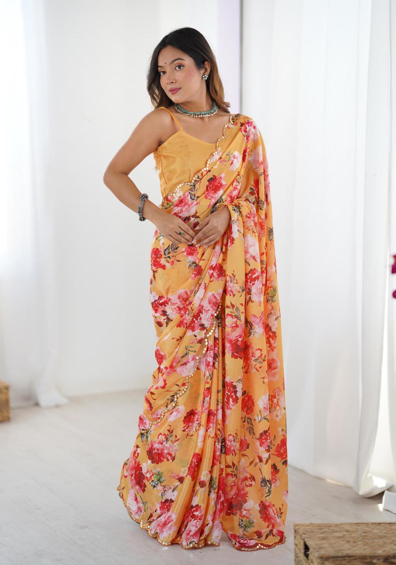 In Pre-stitched saree you will get the saree with stitched plates, belt on the waist and adjustable hooks. So you can wear the saree like a skirt