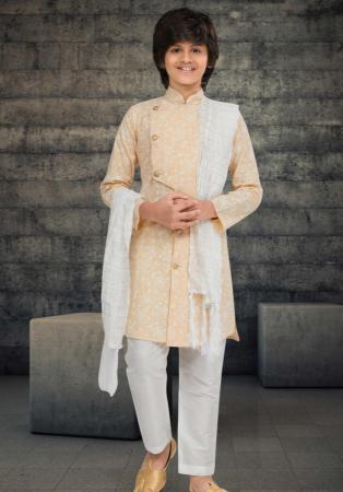 Picture of Pleasing Cotton Tan Kids Kurta Pyjama Picture of Pleasing Cotton Tan Kids Kurta Pyjama