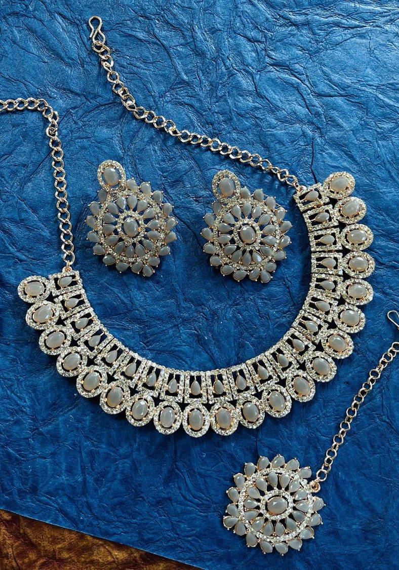 Details: 1 Necklace Set, 2 Earrings, 1 Mang Tikka.