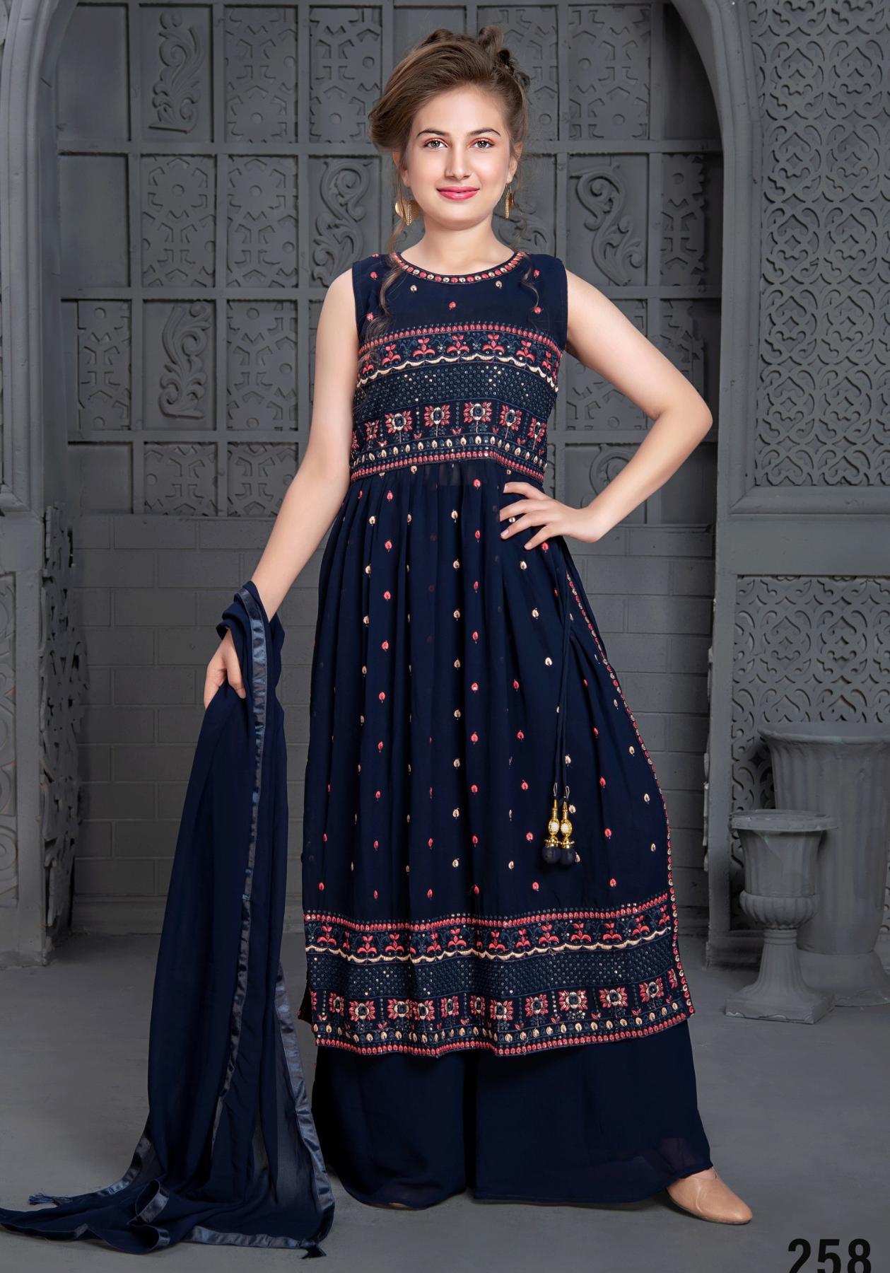 Pleasing Georgette Midnight Blue Kids Salwar Kameez
