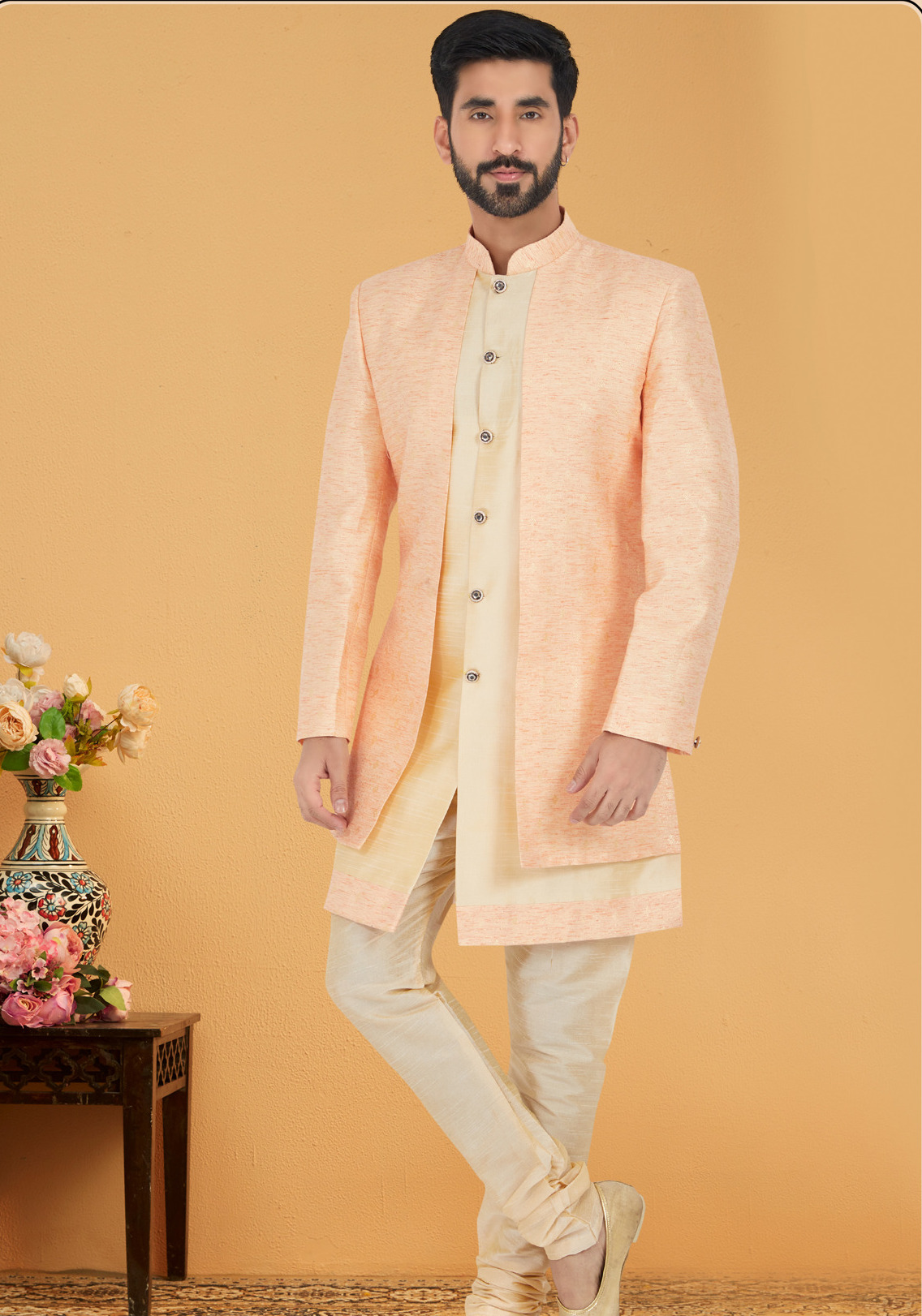 Picture of Pleasing Georgette & Silk Beige Indo Western