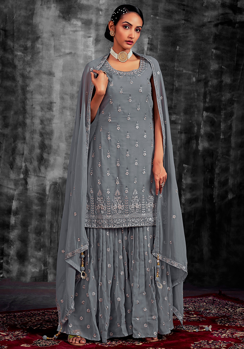 Buy Pleasing Georgette Slate Grey Readymade Salwar Kameez online.