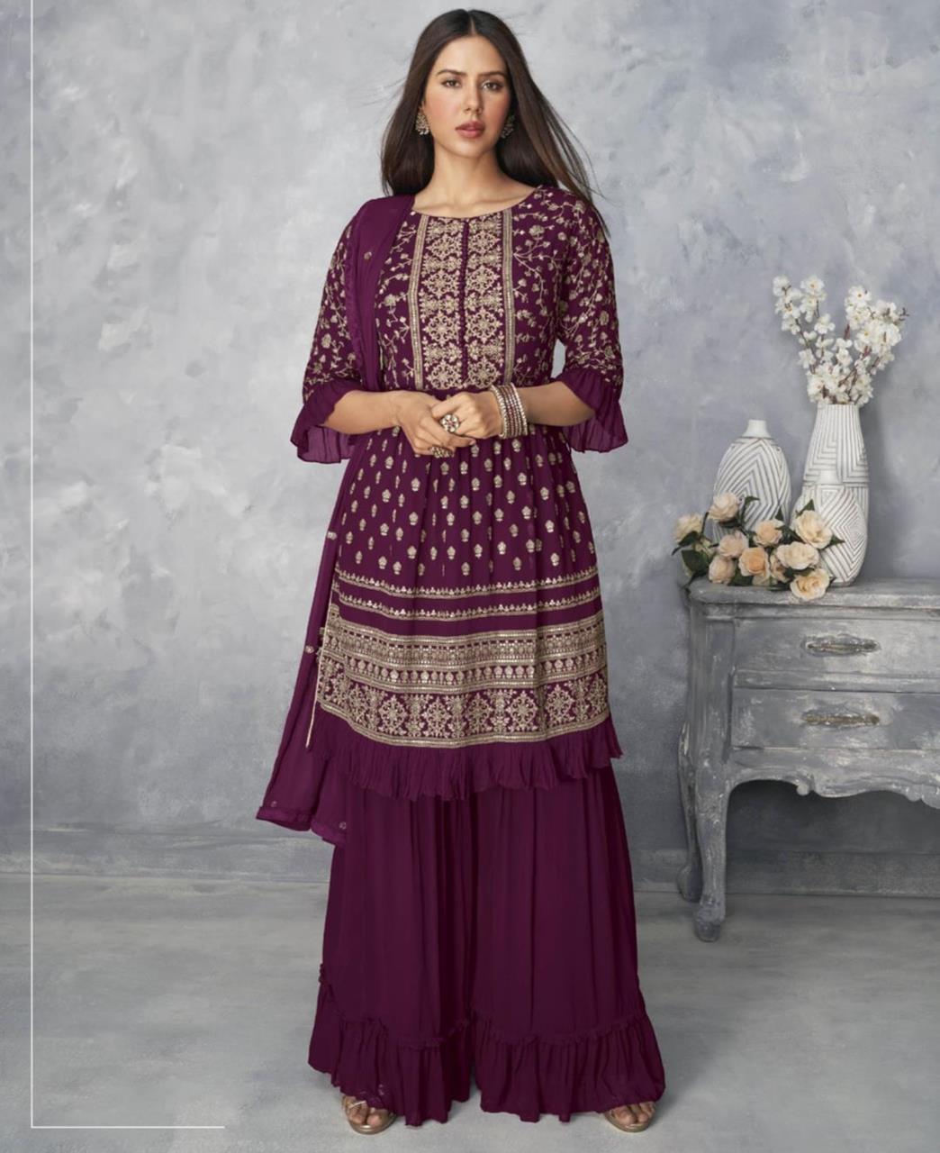 Normally size is measured between the underarm stitching lines from the stressed kameez.