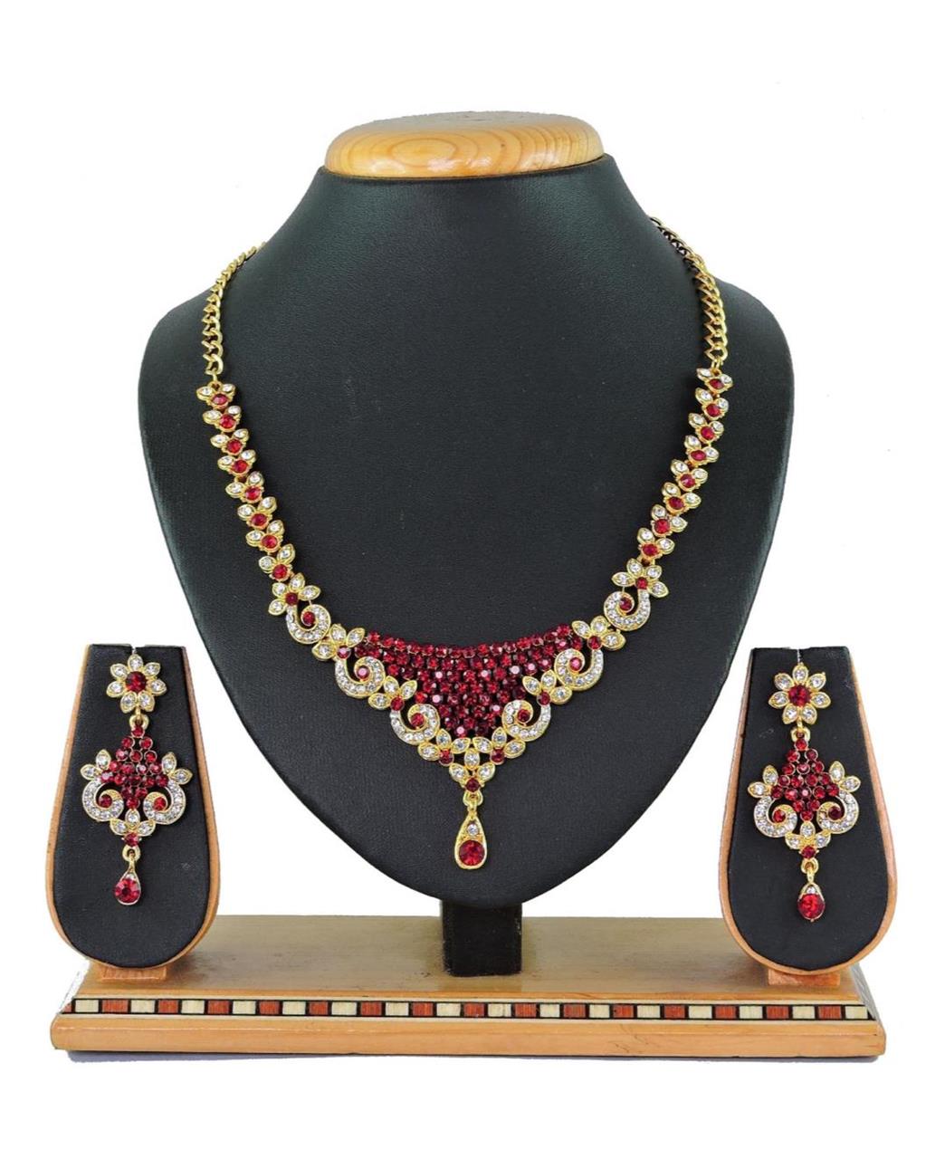 Buy Pleasing Maroon Necklace Set Jewellery Neckless For Women