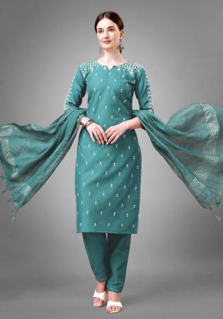 Buy Pretty Cotton Cadet Blue Readymade Salwar Kameez online.