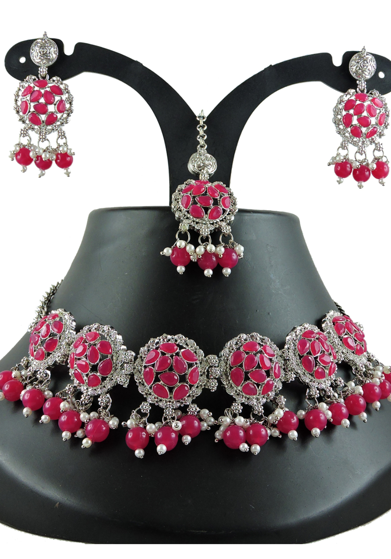 Details: 1 Necklace Set, 2 Earrings, 1 Mang Tikka.