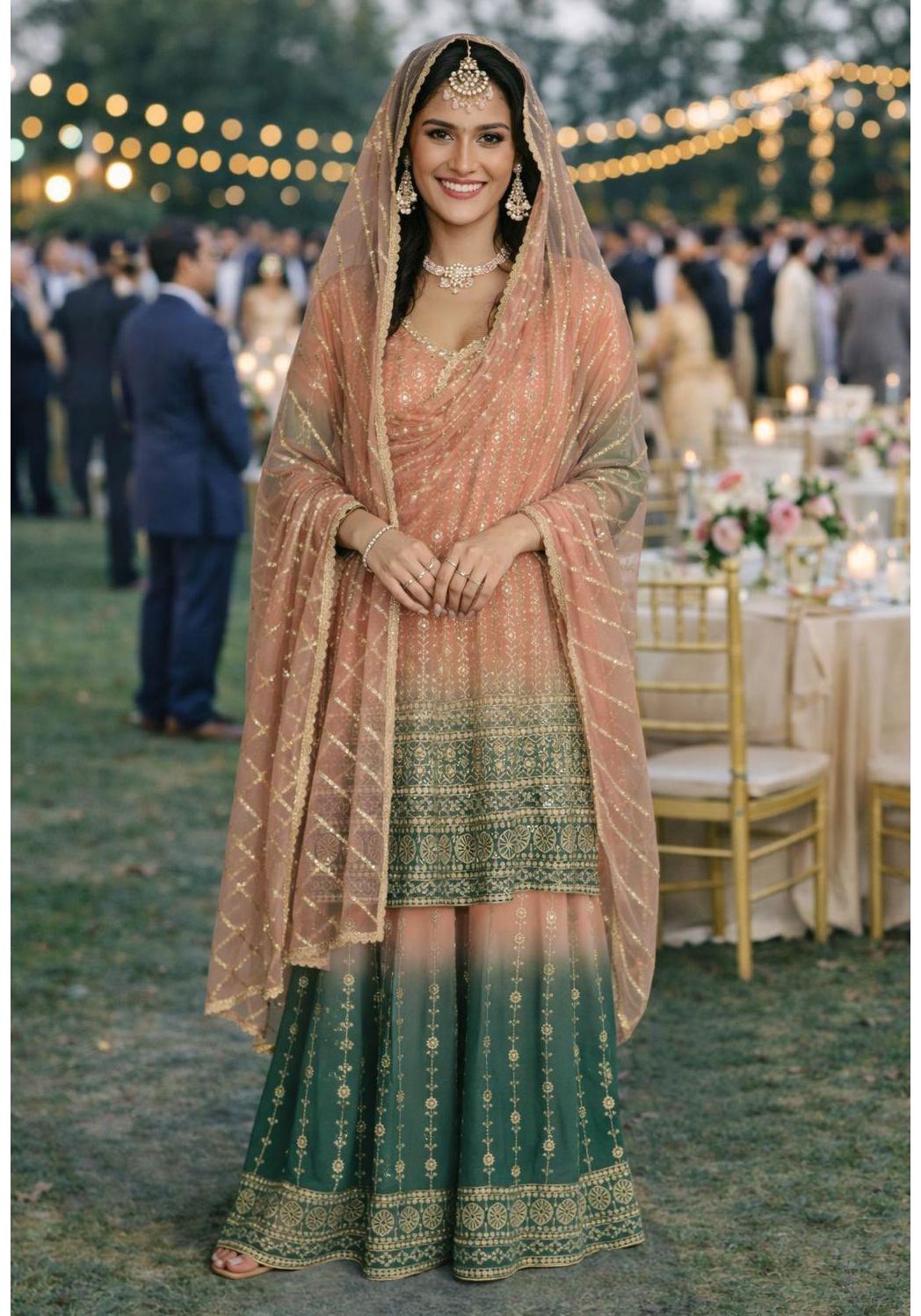 Normally size is measured between the underarm stitching lines from the stressed kameez.