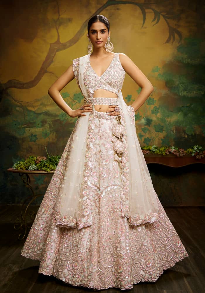 Buy Pretty Net Light Grey Lehenga Choli online.