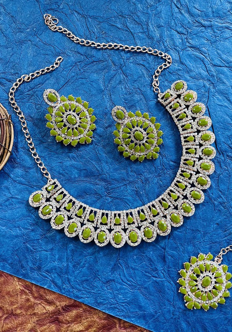 Details: 1 Necklace Set, 2 Earrings, 1 Mang Tikka.