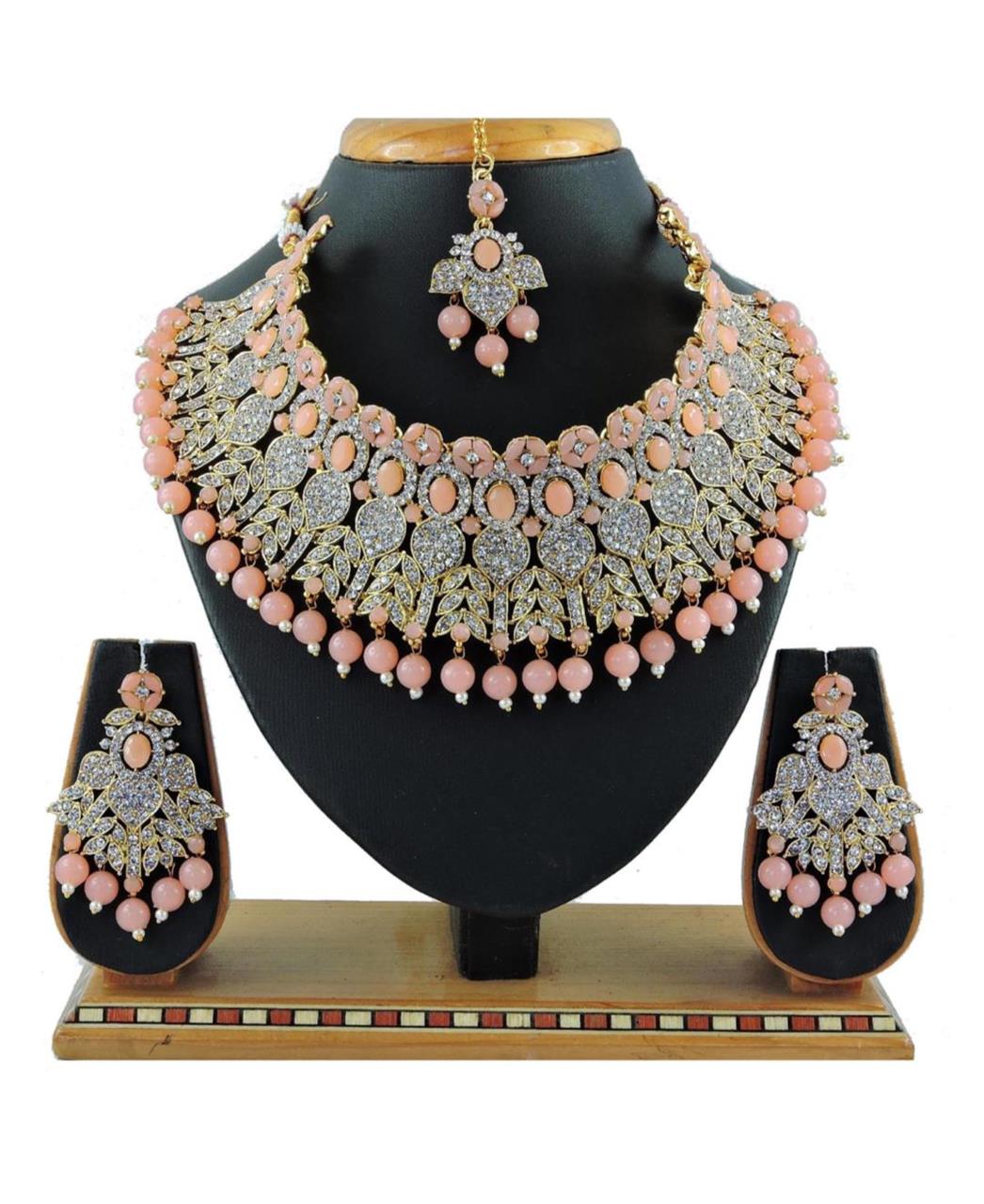 Buy Pretty Peach Necklace Set Jewellery Neckless For Women