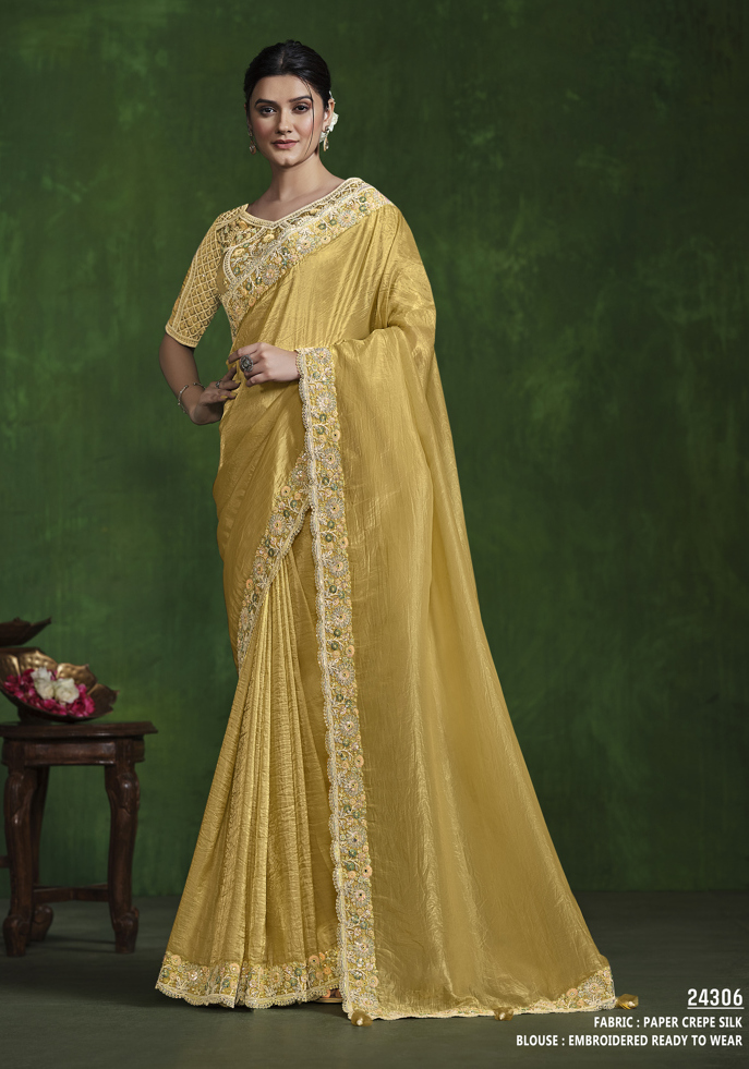 In Pre-stitched saree you will get the saree with stitched plates, belt on the waist and adjustable hooks. So you can wear the saree like a skirt