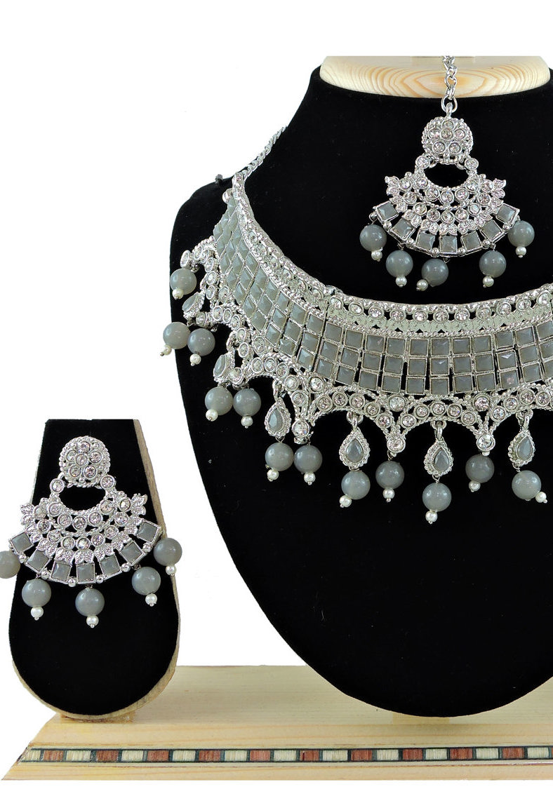 Details: 1 Necklace Set, 2 Earrings, 1 Mang Tikka.