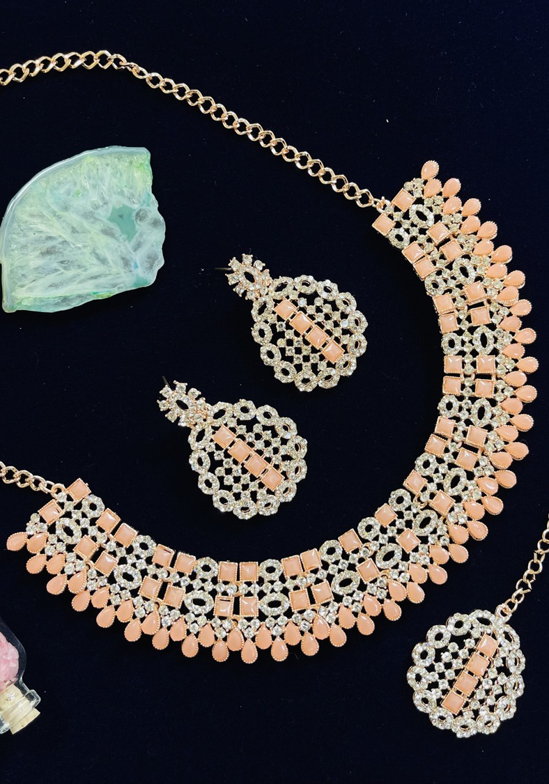 Details: 1 Necklace Set, 2 Earrings, 1 Mang Tikka.