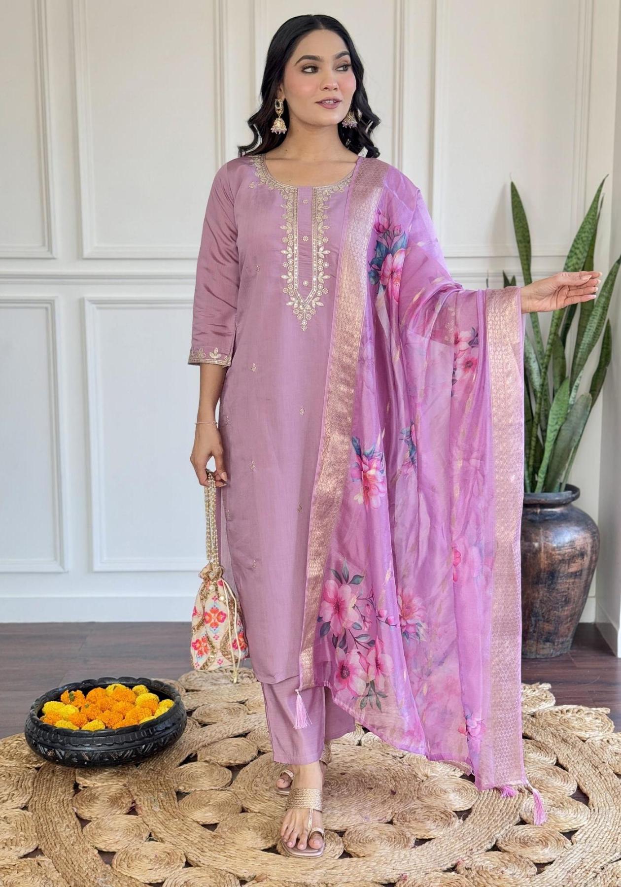 Salwar Kameez is Designed With Heavy Thread Embroidery Work With Printed Dupatta.