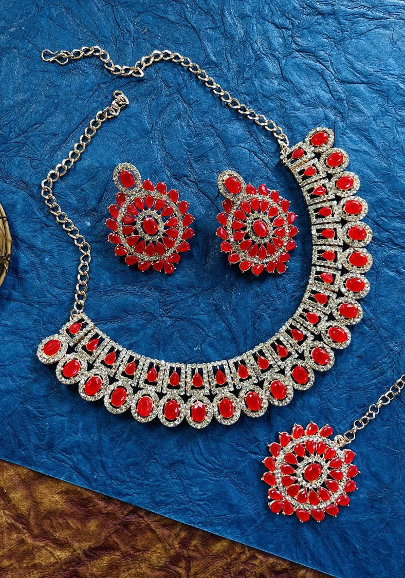 Details: 1 Necklace Set, 2 Earrings, 1 Mang Tikka.