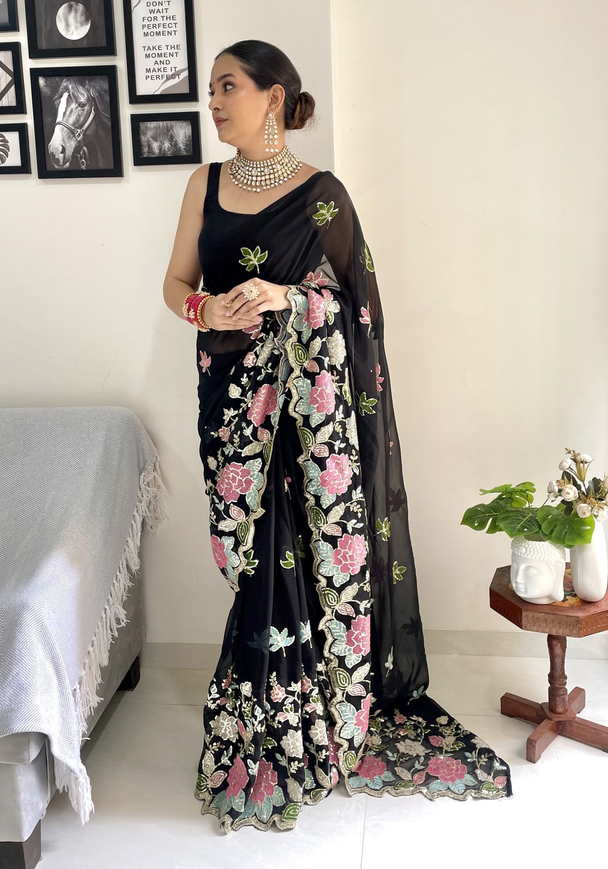 In Pre-stitched saree you will get the saree with stitched plates, belt on the waist and adjustable hooks. So you can wear the saree like a skirt