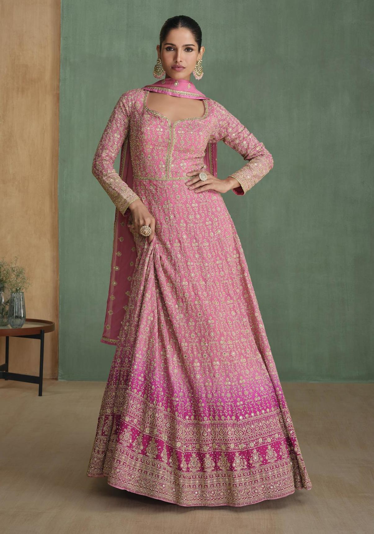 Buy Radiant Georgette Hot Pink Party Wear Gown online.