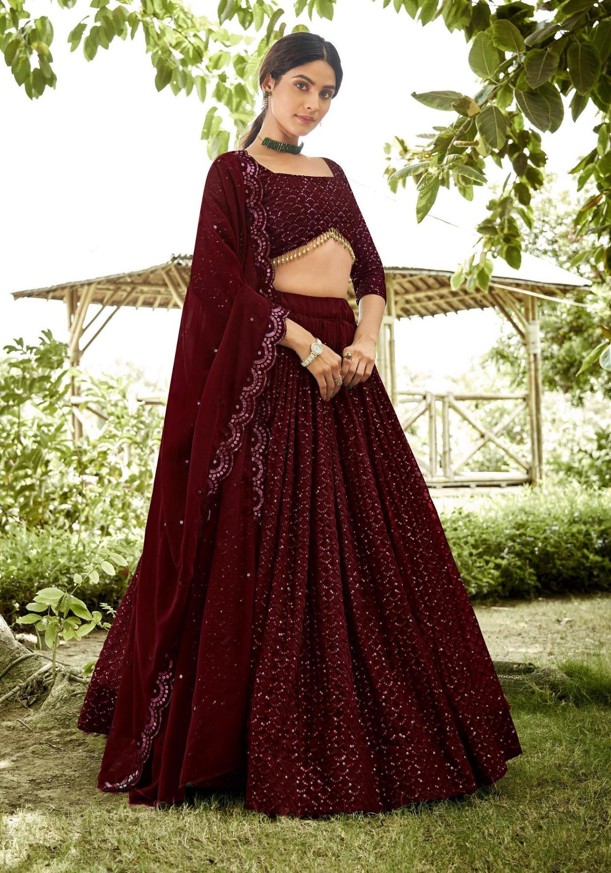 Buy Gorgeous Georgette & Net Purple Lehenga Choli online. Work: Sequins Embroidery Work Lehenga Fabric: Georgette. Choli Fabric: Georgette. Dupatta Fabric:Georgette. Color: Dark Purple. Choli Color: Dark Purple. Dupatta Color:Dark Purple. Maximum size possible size 42