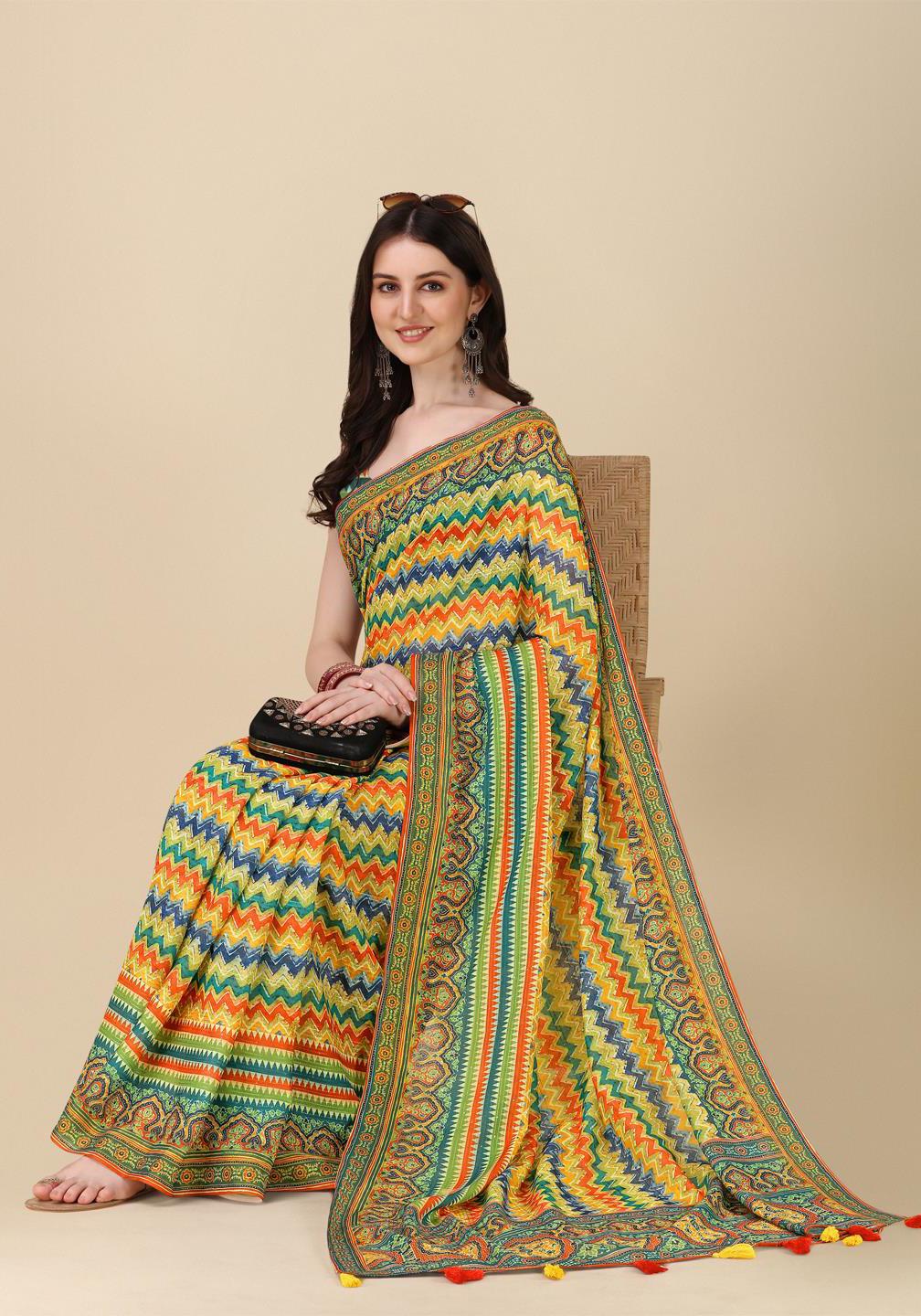 In Pre-stitched saree you will get the saree with stitched plates, belt on the waist and adjustable hooks. So you can wear the saree like a skirt