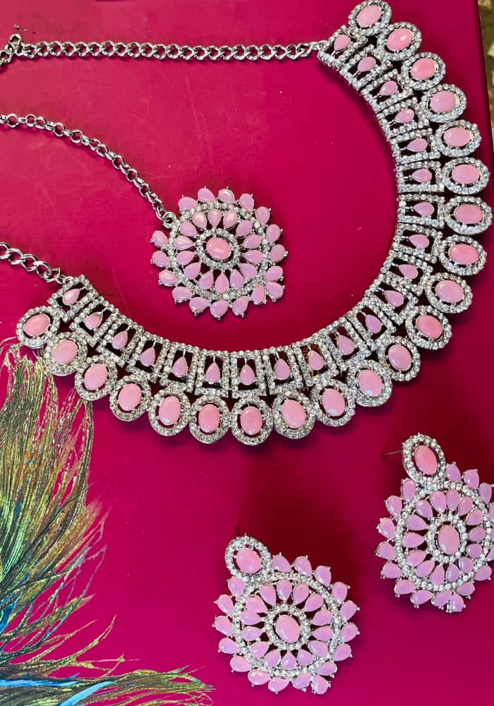 Details: 1 Necklace Set, 2 Earrings, 1 Mang Tikka.