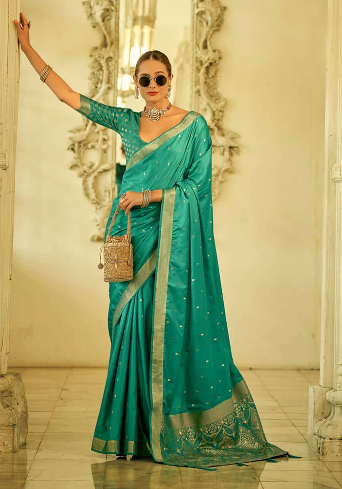 Radiant Satin & Silk Dark Cyan Saree