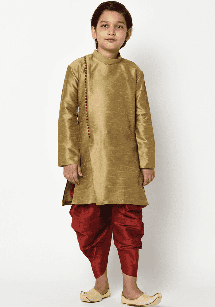 Buy Radiant Silk Tan Kids Kurta Pyjama online.