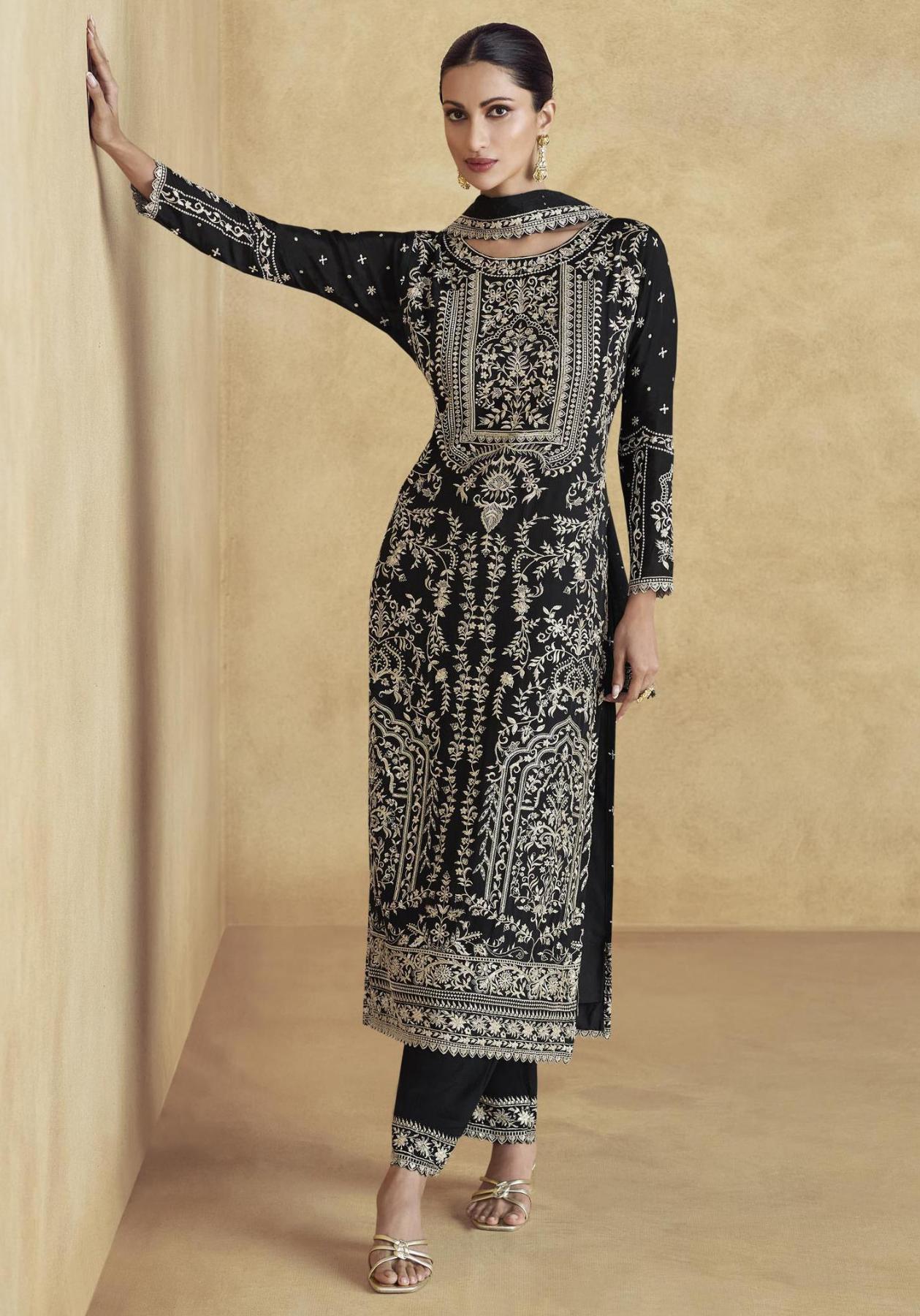 Buy Ravishing Chiffon Black Straight Cut Salwar Kameez online.