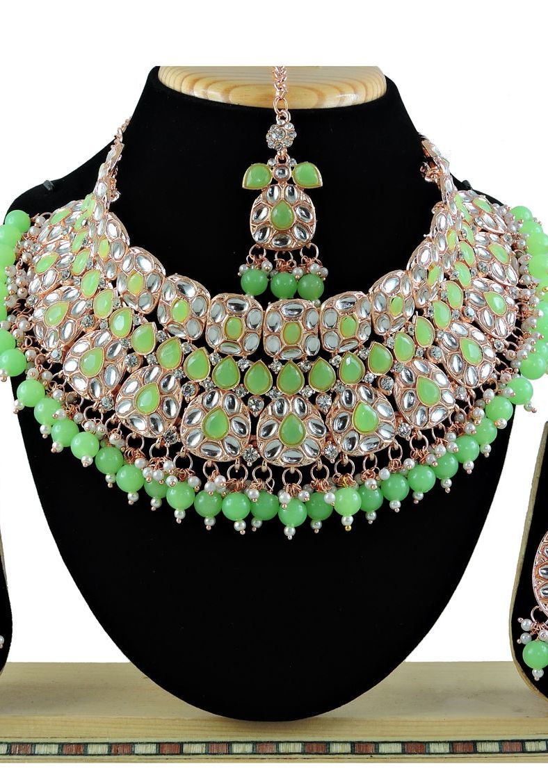 Buy Ravishing Dark Sea Green Necklace Set online.