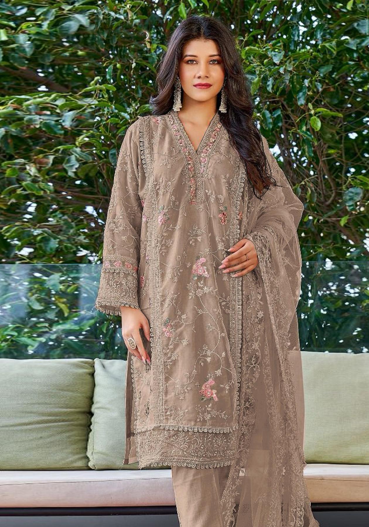 Buy Ravishing Georgette Beige Straight Cut Salwar Kameez online.