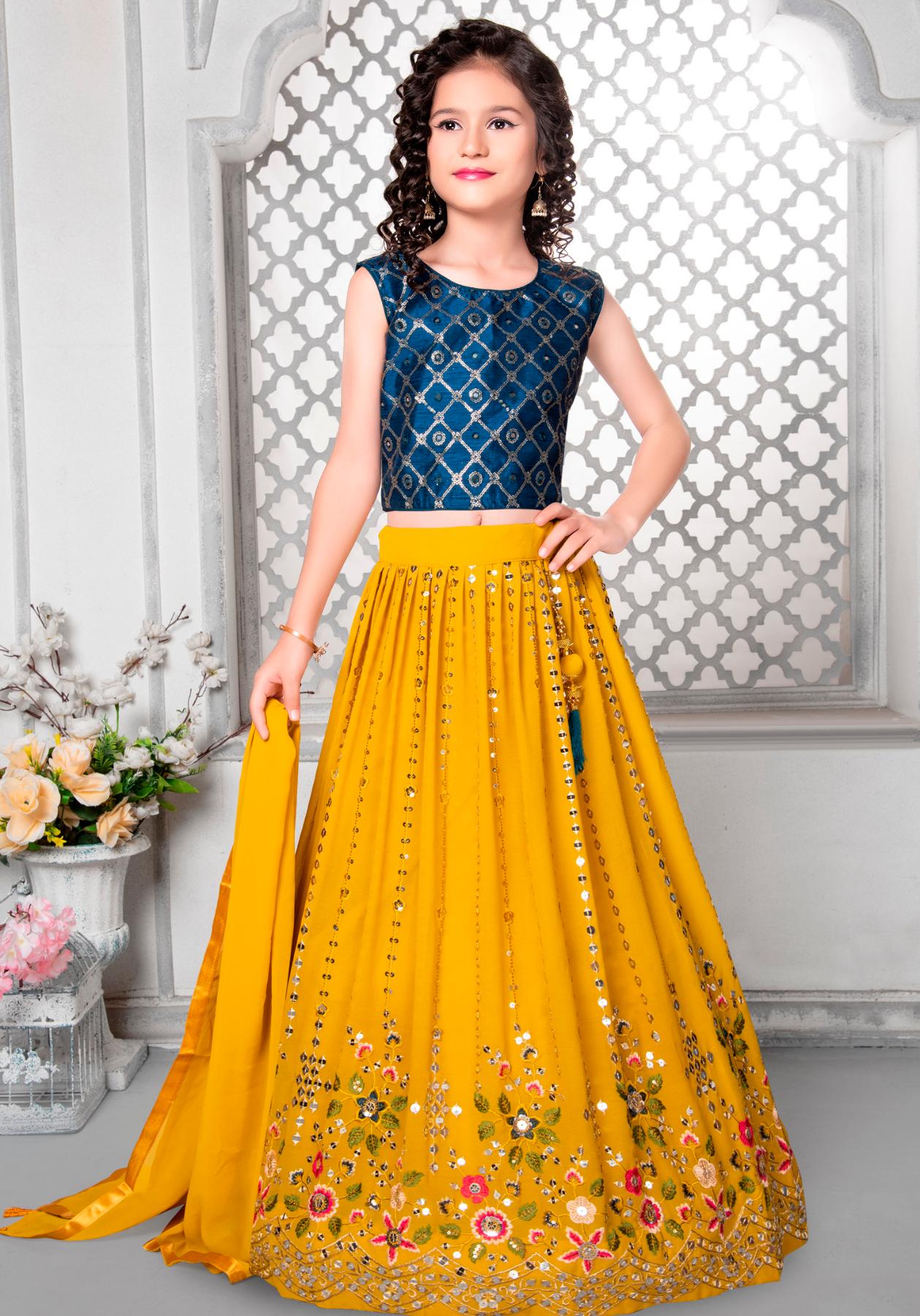 Buy Ravishing Georgette Dark Golden Rod Kids Lehenga Choli online.