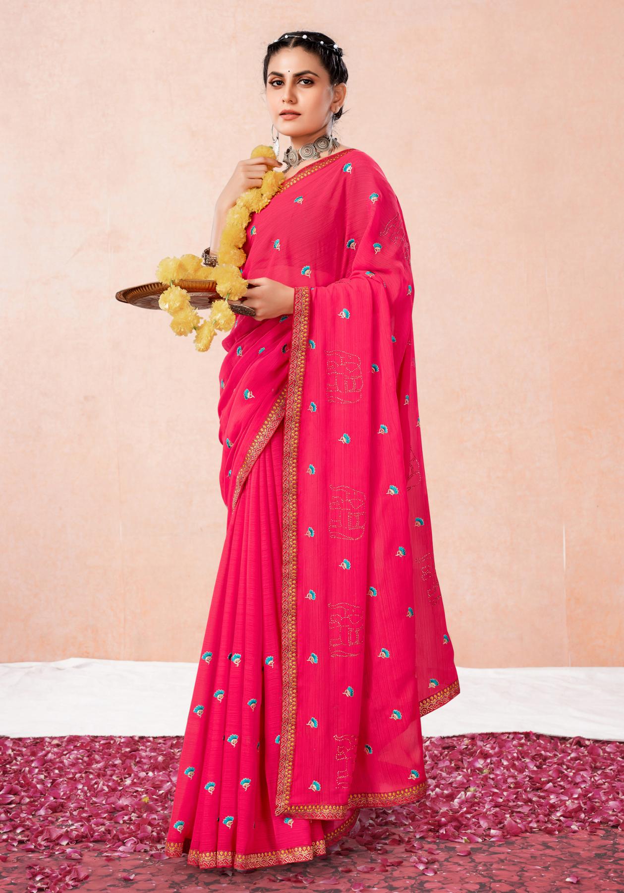 In Pre-stitched saree you will get the saree with stitched plates, belt on the waist and adjustable hooks. So you can wear the saree like a skirt