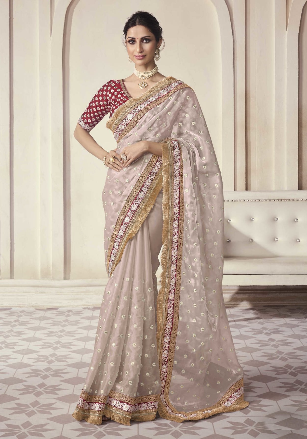 Buy Ravishing Georgette & Organza Bisque Saree online.