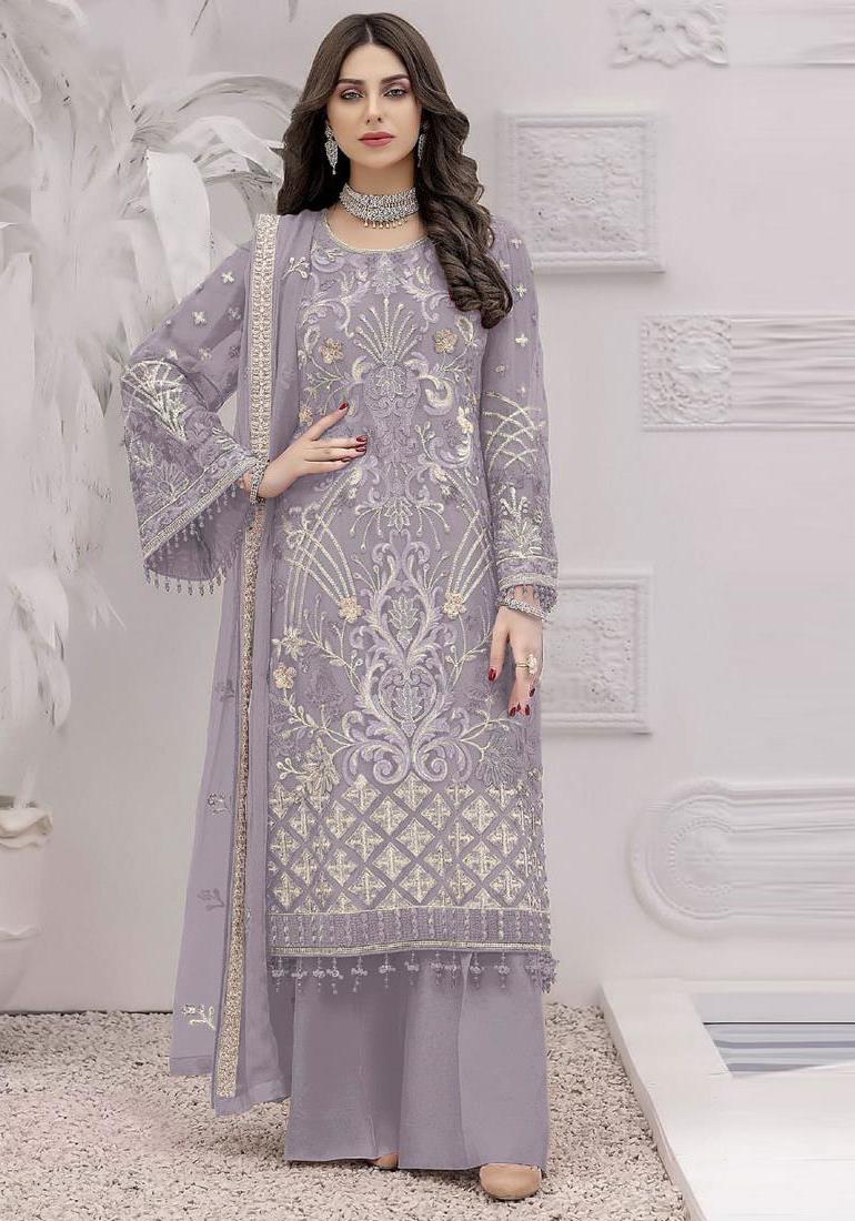 Buy Ravishing Georgette Silver Straight Cut Salwar Kameez online.