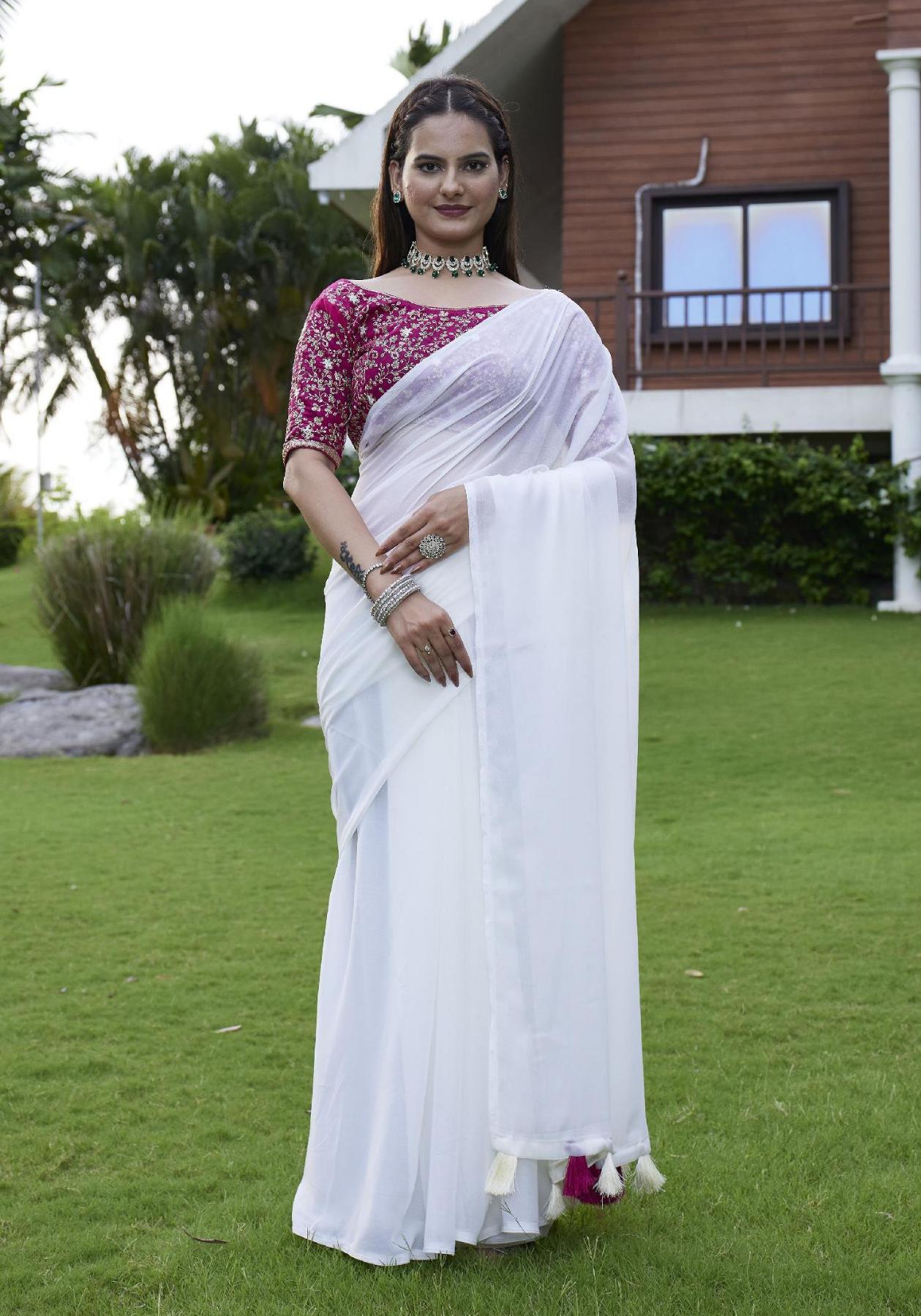 In Pre-stitched saree you will get the saree with stitched plates, belt on the waist and adjustable hooks. So you can wear the saree like a skirt