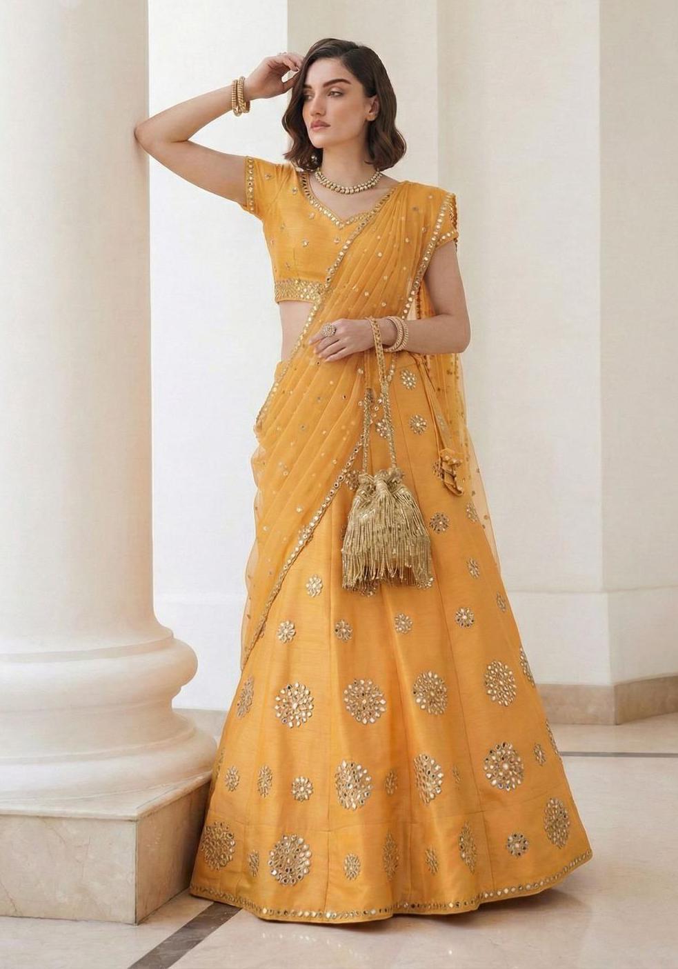 Work: Thread, Zari, Sequins Embroidery & Real Mirror Hand Embroidered Work.